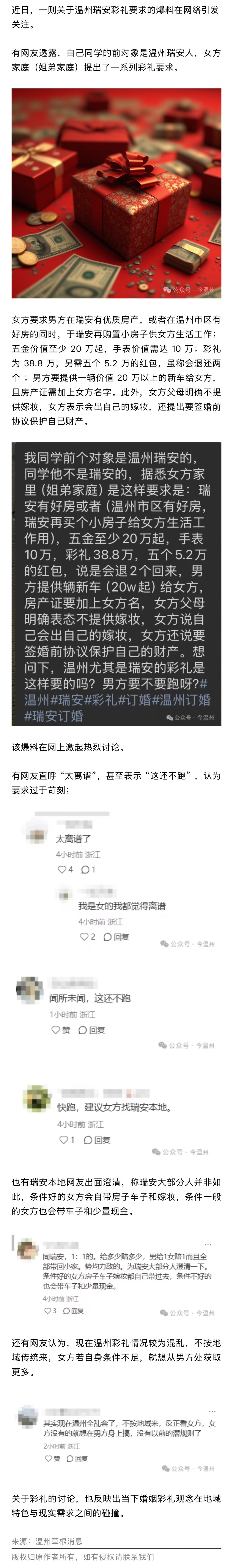 温州女子要天价彩礼!网友炸锅,还不跑?