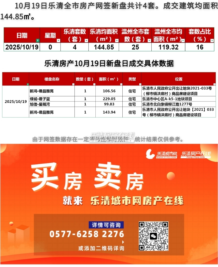 2025年10月19日乐清房产日成交量