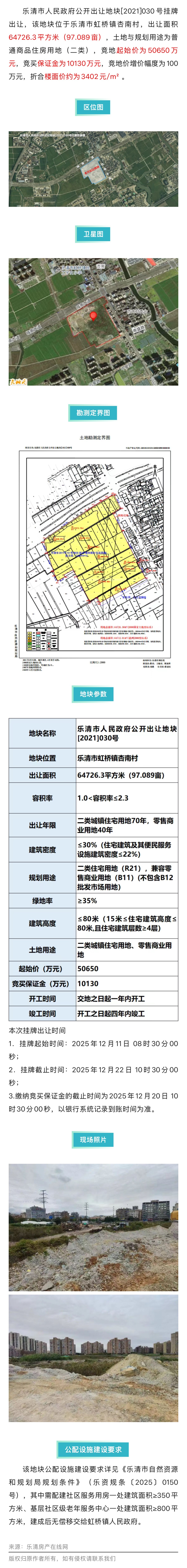 50650万元!乐清这里近百亩大地块挂牌拍卖!