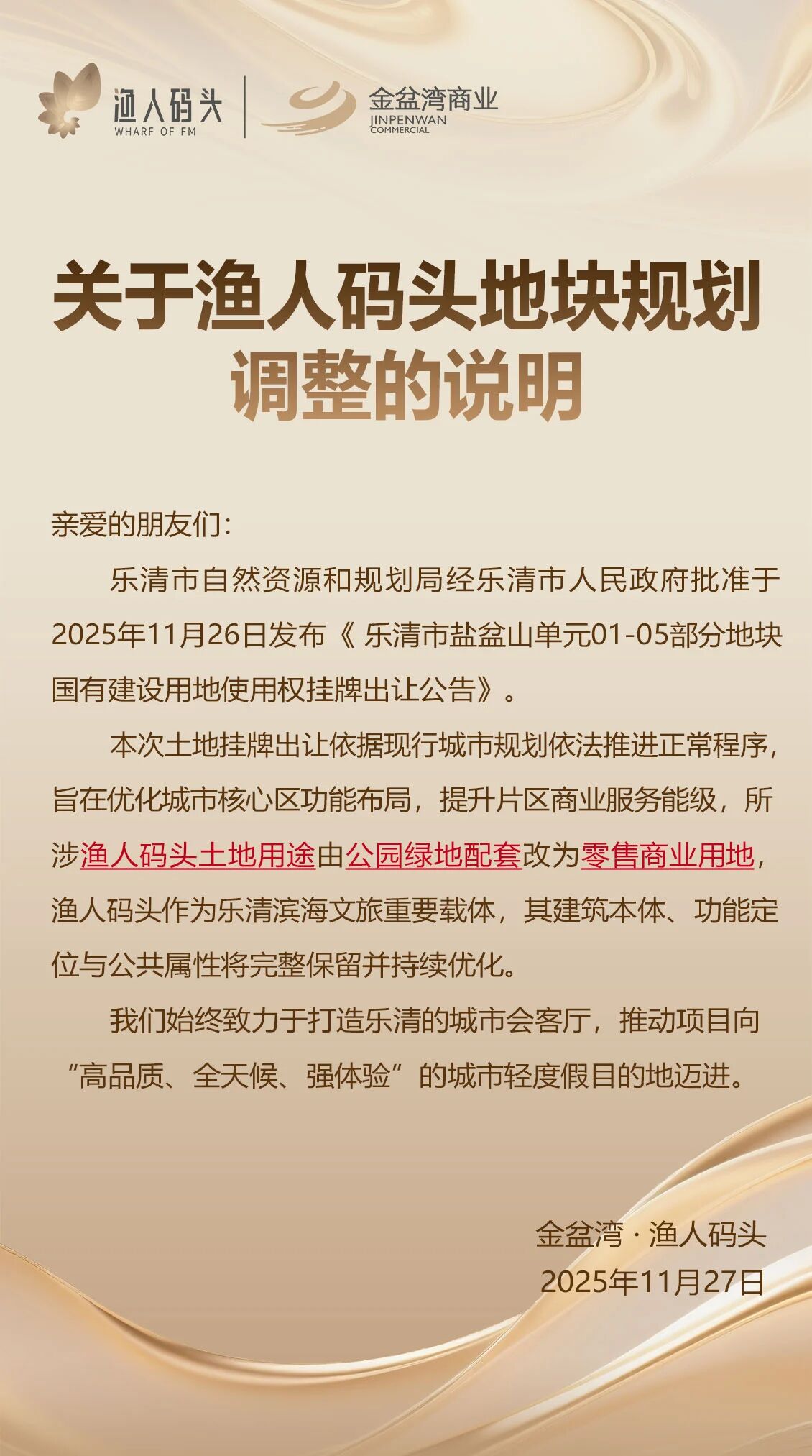 此次拍卖核心是将土地性质从公园市政配套用地变更为商业用地,相关公示海报已由渔人码头发布。