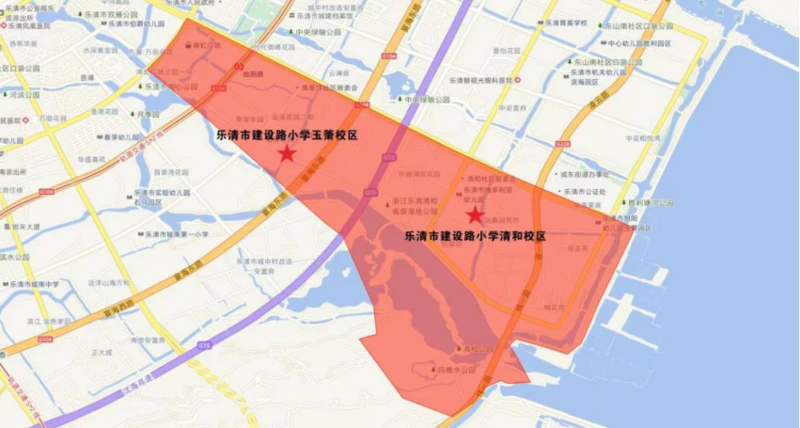 东至胜利塘;南从盐盆山沿高速公路至玉萧路;西至三环路;北至旭阳路范围内区域,包括南草垟村、百岱村,建设路小学玉箫校区和清和校区为双施教区。