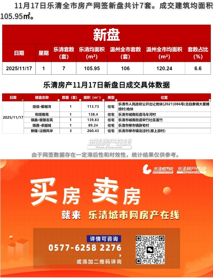 2025年11月17日乐清房产日成交量