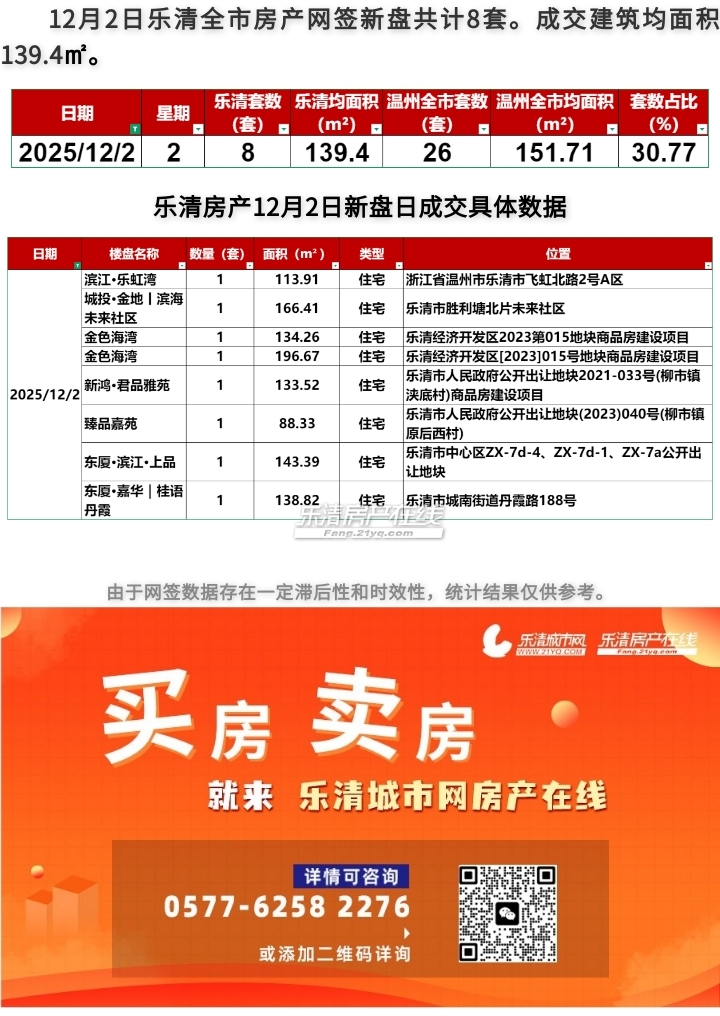 2025年12月2日乐清房产日成交量