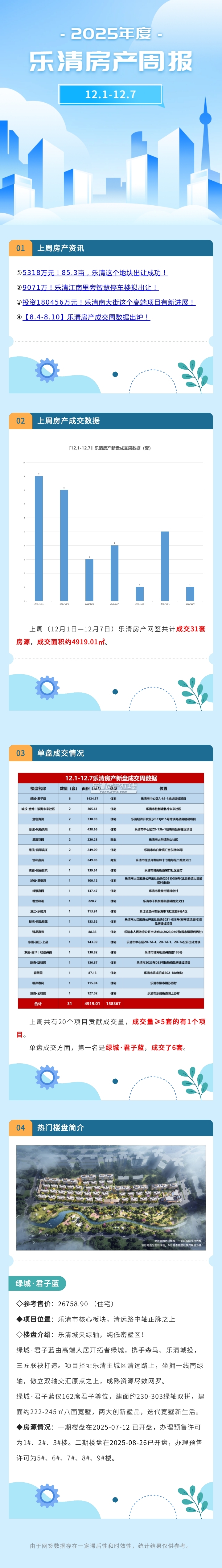 【12.1-12.7】乐清房产上周成交周数据出炉!